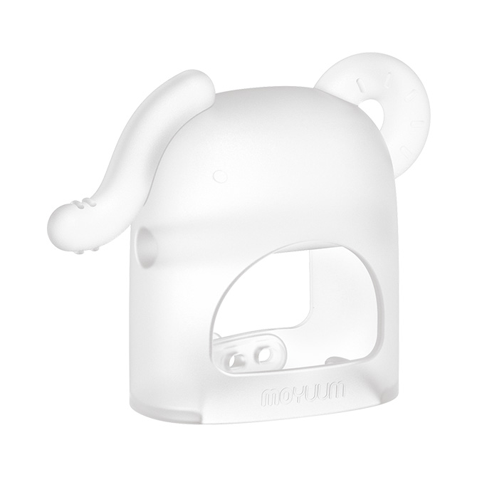 グローブ型で手首にすっぽりとはまるので落としてしまう心配を軽減し、ゾウさんの鼻と耳をモチーフにした突起が歯茎を刺激します。